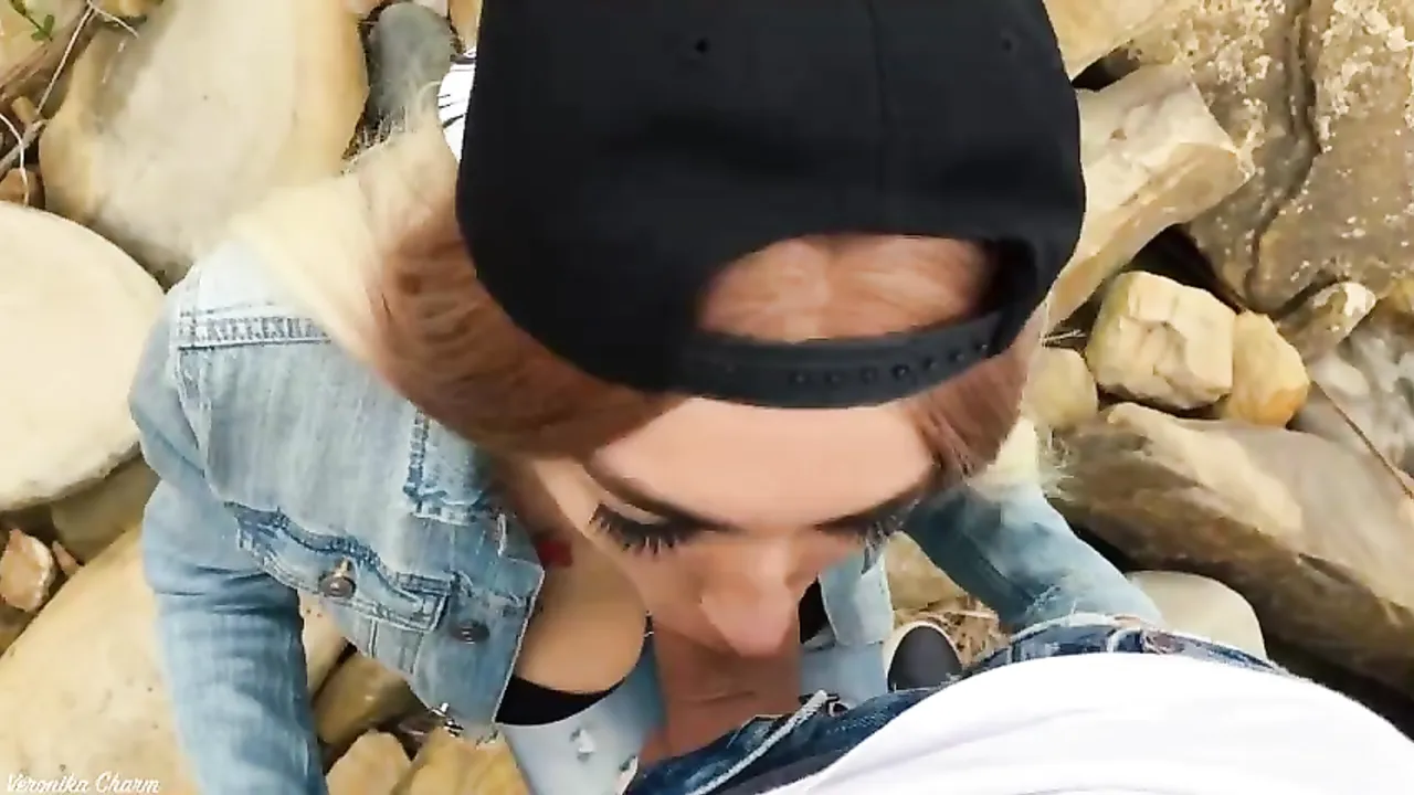 Heimlicher Blowjob im Freien in einer Bucht unter den Blicken der Zuschauer