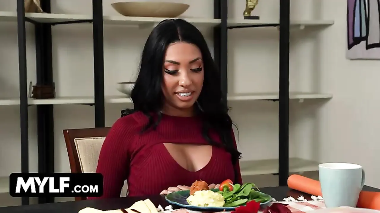 Cette MILF mature et sexy est désespérée. C'est une vraie traînée et elle est incapable de rester fidèle à son mari. Le petit ami de sa fille est venu passer quelques jours chez eux. Ils sont en couple à distance et ne se voient pas souvent, alors ils passent la journée excités et impatients de baiser. Et elle en profite, bien sûr !