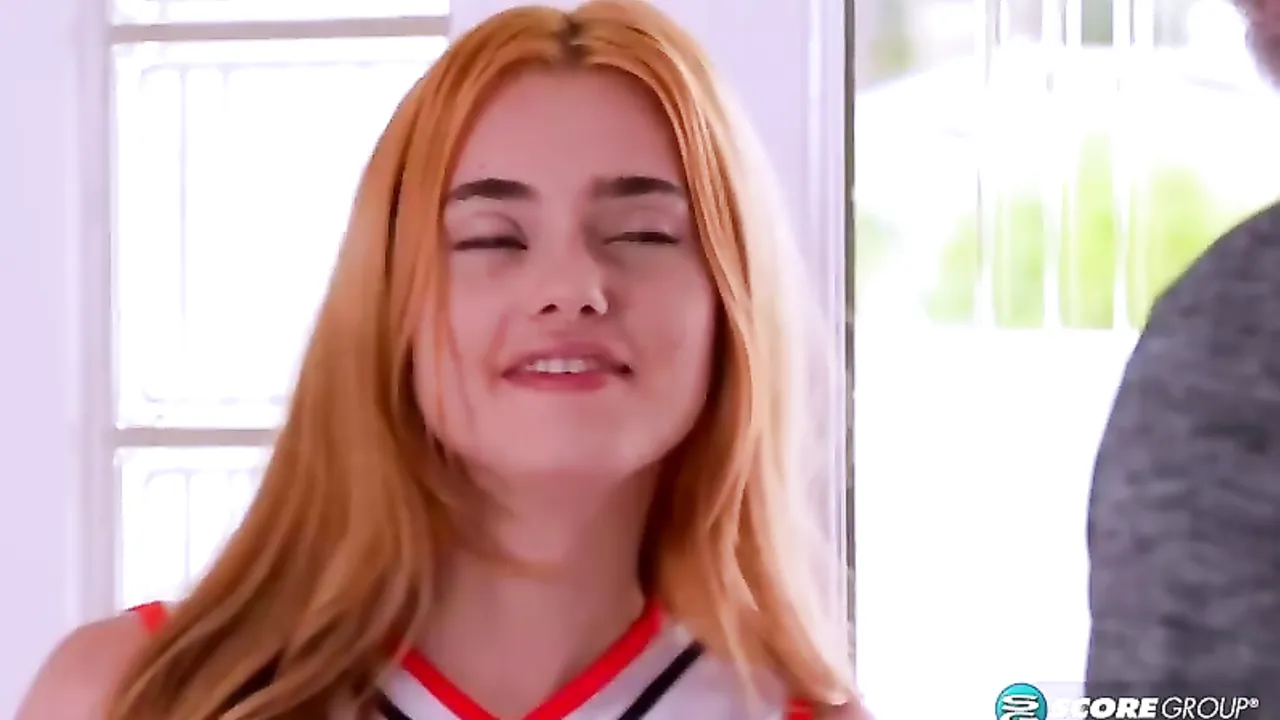 Menuda zorrita. Sabe de sobra que su novio no está aun en casa pero si su padre. Finge despiste y le dice al padre que si le queda bien su nuevo uniforme de animadora. Salta a la vista las ganas que tiene de follarse al hombre maduro ...