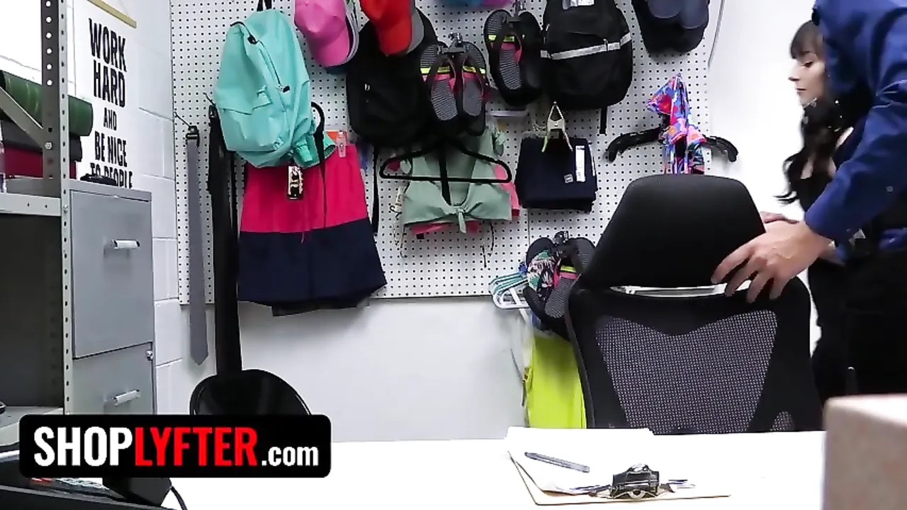 Esta chica está en un serio aprieto. El vigilante de seguridad acaba de sorprenderla intentando robar unos perfumes caros en una tienda. La conduce al cuarto de seguridad y alli parecen llegar a un acuerdo bueno para ambos. Ella se agacha a mamar rabo y a dejarse follar ... y se va sin denuncia!