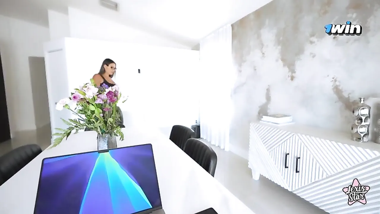 Llenando de lefa la cara, la boca y las gafas de su novia culona ... !!
