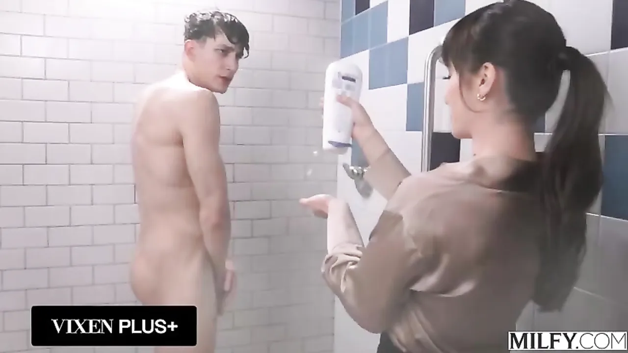 La madre de la novia de este chico aprovecha descaradamente que está a solas con el en casa para colarse en su ducha y comprobar de primera mano la buena polla que tiene. Menuda follada le espera al pobre muchacho jeje