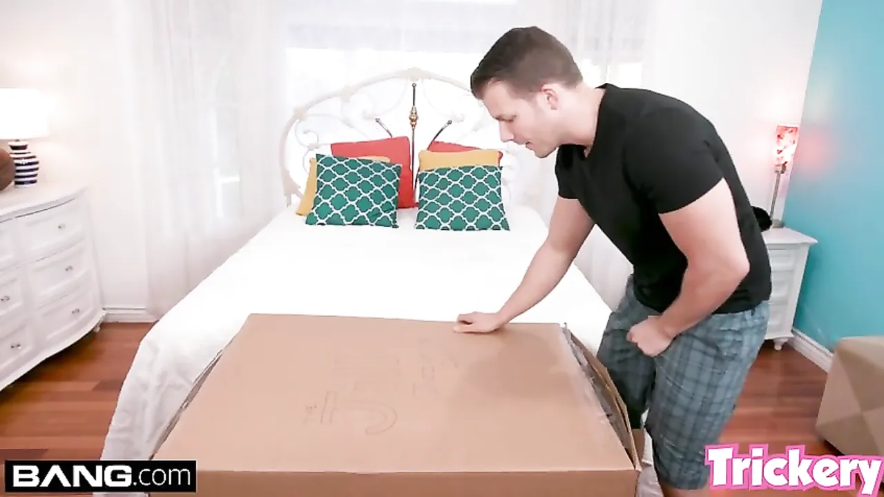 Esta universitaria viciosa sorprende a su hermanastro pajeandose con juguetes eroticos. Decide prepararle una sorpresa muy friki. Finge que el chico ha recibido un juguete nuevo y se mete ella dentro de la caja ... desnuda y abierta de piernas para que la folle bien follada ... !!