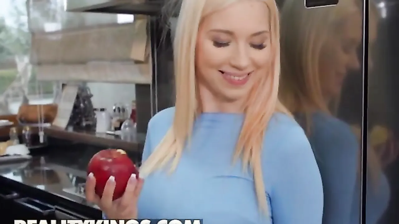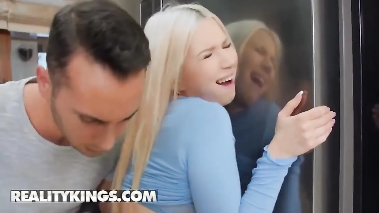 Den här heta blondinen blir överfallen i köket av sin systers snygga pojkvän. Killen stoppar in sina fingrar under hennes leggings och smeker hennes blygdläppar. Hon är så upphetsad... hon är riktigt kåt. Nu längtar hon efter att prova hans hårda kuk!