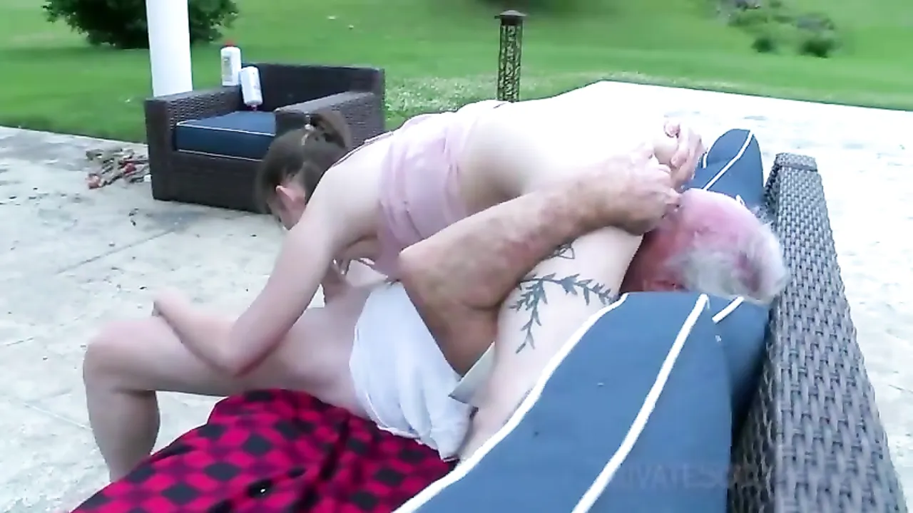 Esta caliente universitaria veinteañera ha sentido, de siempre, una tremenda atracción sexual por follar con hombres mayores que ella. Y el vecino es uno atractivo jubilado que siempre le ha puesto muy cerda. Qué bien se lo pasa dejándose follar por el hombre!